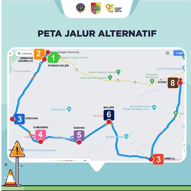 "Nanti kendaraan dari arah Lumajang titiknya ke arah Pondok Dalem. Di sana ada persimpangan jalan. Arus kendaraan kami arahkan ke selatan. Ada petugas dari DLLAJ (Dishub) Jember dan anggota polisi. Nantinya tinggal mengikuti rambu-rambu penunjuk arah jalan yang sudah disiapkan," imbuh Agus.