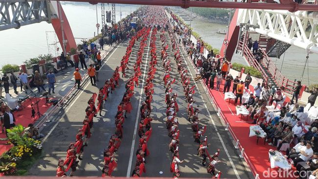"Rekor MURI kalau tidak salah 10.372 kategori superlatif. Tari remo secara serentak di 10 situs sejarah dan 2 jembatan terbanyak dan peserta yang luar biasa 65.945," kata Yusuf kepada wartawan di Jembatan Suroboyo, Minggu (18/12/2022).