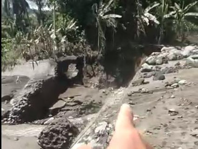 "Lahar dingin kemarin memutuskan jalur menuju ke Desa Sumber Langsep. Sekarang warga harus melewati material lahar dingin ke sana, untuk menuju ke perkampungan," ujar relawan di video tersebut.