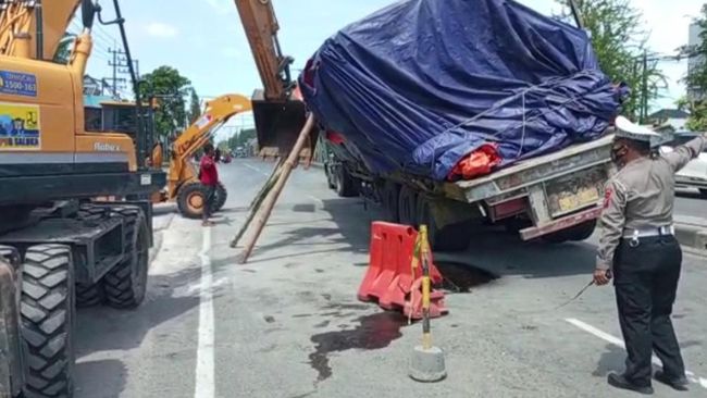 "Jadi muatan besi itu sebelumnya kan diberi oli sehingga ketika melaju di jalan bergelombang ambles (miring)," kata KBO Satlantas Polres Lamongan Iptu Fifin Yuli Subagyo kepada detikJatim, Rabu (21/12/2022).