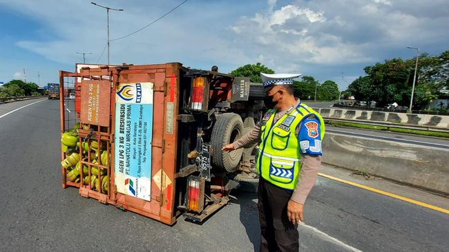 "Kendaraan truk oleng dan terguling tepatnya di lajur paling kanan. Ya, memang lalu lintas sempat terjadi kepadatan. Evakuasi truk sudah aman," ujar Ega melalui pesan WhatsApp.