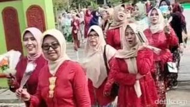 Puluhan emak-emak dan guru perempuan di Bojonegoro memperingati Hari Ibu 2022. Mereka memperingati dengan cara pawai berjalan dengan berjalan kaki dengan memakai kebaya.