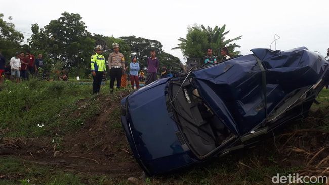 Mitsubishi Kuda bernopol AE 1693 GA tertabrak KA Sancaka relasi Surabaya-Yogyakarta di Ngawi menewaskan 3 orang. Kondisi mobil itu remuk tak berbentuk.