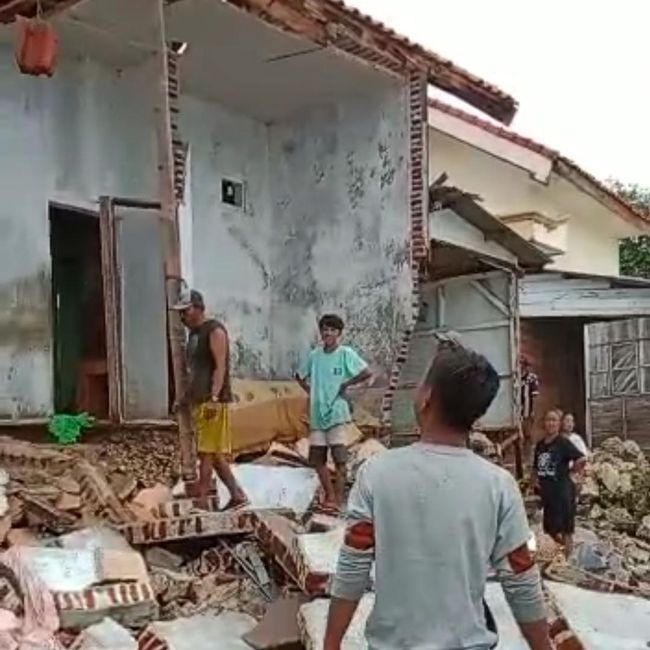 "Kami juga memberikan bantuan karung sak yang nantinya diisi pasir untuk penahan ombak sementara, serta memberikan terpal kepada warga terdampak untuk digunakan penutup rumahnya yang rusak," kata Aries.