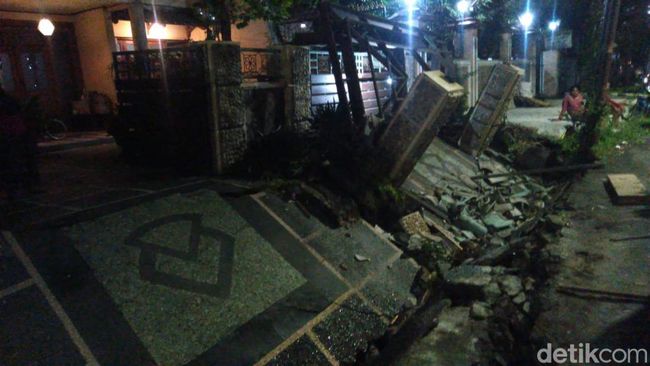 "Menurut keterangan dari penghuni rumah, kejadian tersebut terjadi pukul 19.00 WIB, saat itu ia hendak keluar rumah namun tiba-tiba mendengar suara pot terjatuh, saat dicek ke luar pagar akses jalan ke luar masuk rumah sudah dalam keadaan ambles," ujar Buyung.