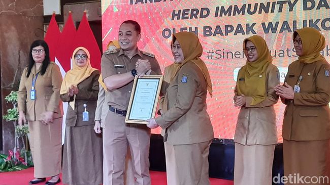 Kota Surabaya meraih penghargaan dari Kemenkes usai mewujudkan herd immunity masyarakat. Ada pun tiga kategori yang diraih, yakni instansi, fasyankes, dan individu (untuk 63 kepala puskesmas).