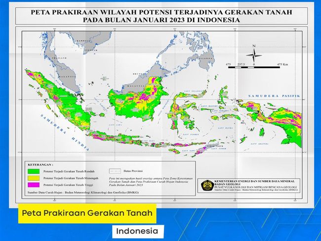 Dalam keterangannya, gerakan tanah itu berpotensi terjadi di 34 kabupaten/kota dengan tingkat menengah dan tinggi.