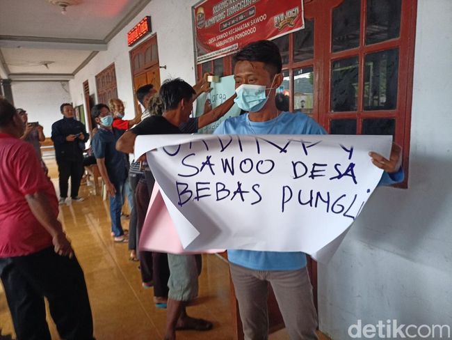 Belasan warga Desa/KecamatanSawoo, Ponorogo mendatangi Balai Desa. Mereka membawa poster yang isinya "Jadikan Sawoo Desa Bebas Pungli", "Usut Tuntas Praktek Pungli, Rubah Tanah Desa Sawoo" dan masih banyak lainnya.