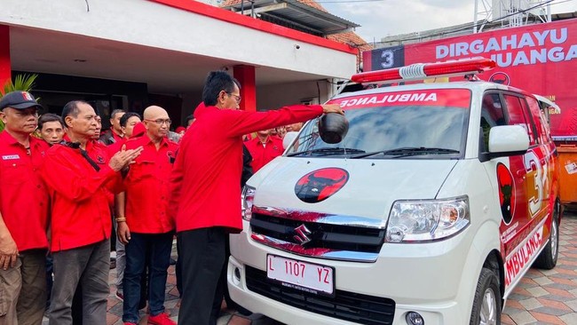 "Menjelang ulang tahun ke-50 atau usia emas PDI Perjuangan, yang sebentar lagi kita peringati dengan meriah, hari ini kita bisa menambah satu unit ambulan baru," kata Adi.