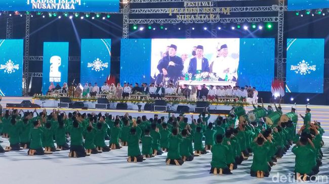 "Saya ingin tadi yang bermain hadrah yang paling muda tolong naik ke depan, yang merasa paling muda yang bermain hadrah seragamnya atas hijau bawah hitam, yang merasa paling muda kalau yang tidak merasa paling muda jangan naik ke panggung. Silakan yang merasa paling muda, silakan maju," kata Jokowi.