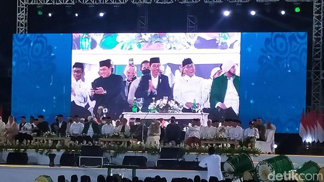 "Alhamduillah kita sangat bersyukur tanah air kita Indonesia ini adalah zamrud khatulistiwa dengan suku, bahasa, budaya, agama yang beragam, yang berbineka tunggal ika, saling akulturasi, berasimilasi dan beradaptasi, saling bersilang budaya tanpa kehilangan jati diri serta rukun dan bersatu. Ini kita lihat, apa yang kita lihat malam ini adalah apa yang tadi baru saja saya sampaikan," kata Jokowi.