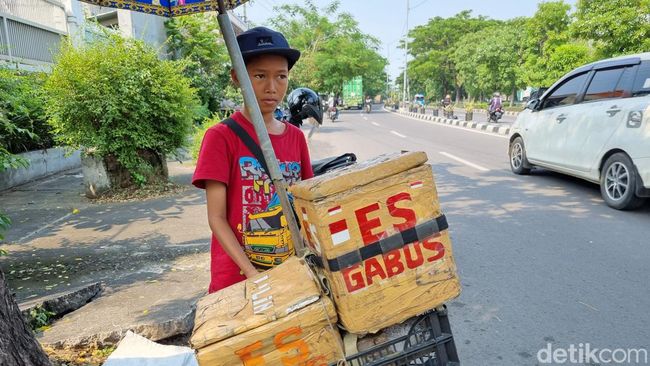 Sambil memainkan lato-lato buatannya sendiri yang terbuat dari rafia, Bintang terlihat begitu ceria. Bocah berusia 13 tahun itu sama sekali tidak mengeluh karena jualan es gabus.