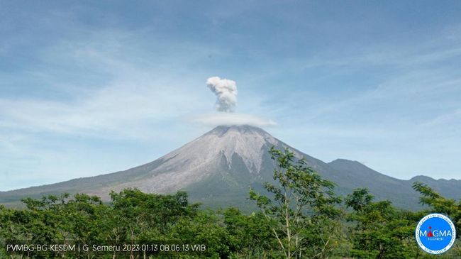 Gunung Semeru kembali erupsi. Erupsi pagi ini terjadi pukul 08.02 WIB, Jumat (13/1/2023). Tinggi letusan teramati 1.000 Meter dari atas puncak Mahameru 4.676 meter di atas permukaan laut.