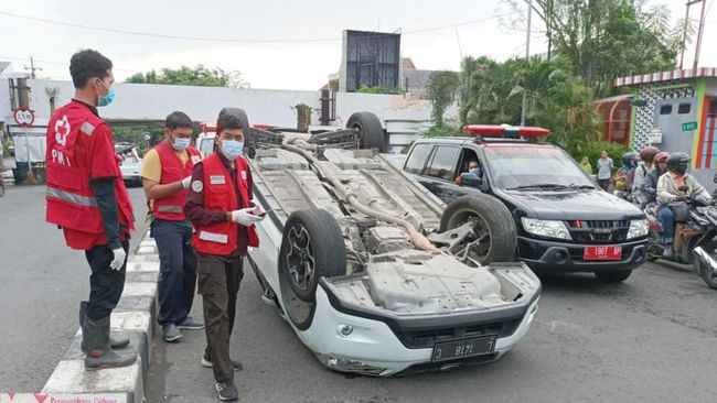"Pengemudi mengambil lajur terlalu ke kanan, roda depan menabrak pembatas jalan hingga menyebabkan mobil terbalik," jelas Buyung.