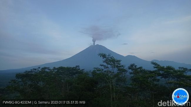 PVMBG mencatat hari ini Gunung Semeru mengalami erupsi sebanyak 3 kali, Selasa (17/1/2023). Erupsi pertama kali terjadi pukul 05.09 WIB. Saat itu tinggi letusan 700 meter dari puncak mahameru atau 4.376 meter di atas permukaan laut.