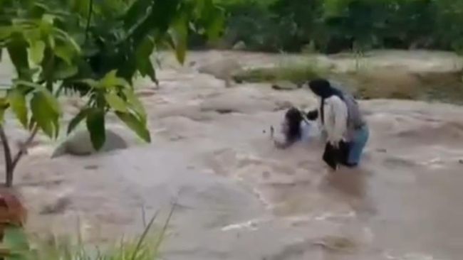 Dua pengunjung perempuan sebuah kafe di Kediri viral terseret derasnya arus sungai. Namun dua orang itu akhirnya dapat diselamatkan pihak kafe dan pengunjung lain.