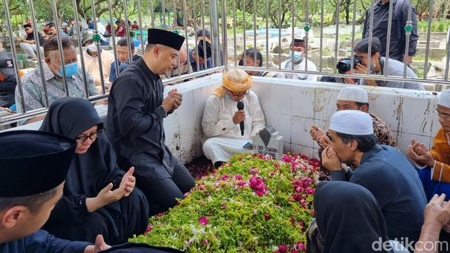 Wali Kota Surabaya Eri Cahyadi tak mampu membendung air mata ketika memakamkan ayahnya, Urip Soewondo. Ayahanda Eri meninggal dunia pada Minggu 22 Januari 2023, pukul 00.15 WIB.