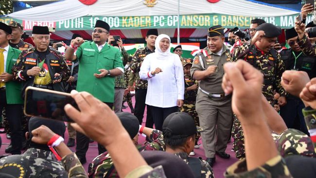 Gubernur Jawa Timur Khofifah Indar Parawansa mengapresiasi Gerakan Pemuda Ansor (GP Ansor) dan Banser. Itu lantaran komitmennya menjadi garda terdepan dalam melindungi Ulama Nahdlatul Ulama (NU) serta konsisten jadi benteng NKRI.
