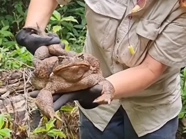 Mereka mengaku terkejut karena telah menemukan katak tebu 'monster' yang beratnya kira-kira sama dengan ayam jantan.