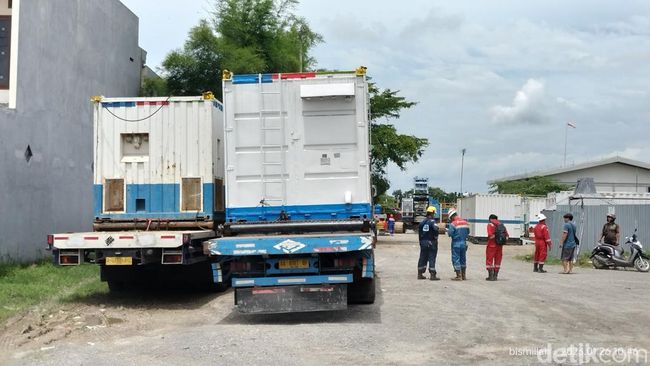 Sebelumnya, 2 truk kontainer warna putih biru yang terdapat logo Elnusa sempat dihentikan beberapa warga Ngampel saat hendak masuk lokasi proyek pengeboran minyak di desanya.
