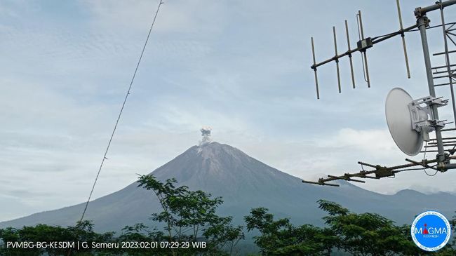 Gunung Semeru erupsi pukul 07.29 WIB, Rabu (1/2/2023). Tinggi letusan 700 meter di atas puncak mahameru atau 4.376 meter di atas permukaan laut.