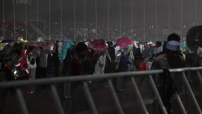 Setelah konser berhenti, warga yang menonton konser berbondong-bondong berdesakan keluar stadion. Namun, ada juga beberapa orang yang mencoba merangsek masuk ingin melihat situasi di dalam stadion. Beberapa anak-anak muda yang memakai sarung tampak menikmati hujan, meski acara harus berakhir lebih cepat.
