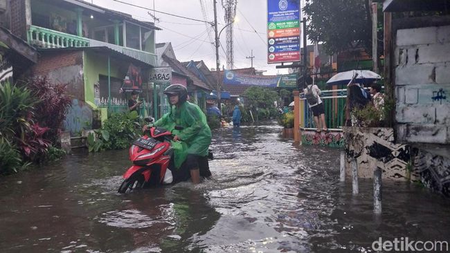 Dari pantauan detikJatim pada Rabu (8/2/2023) sekitar pukul 16.50 WIB, genangan hampir selutut orang dewasa merendam sebagian kawasan di Jalan Jaksa Agung Suprapto gang 1.