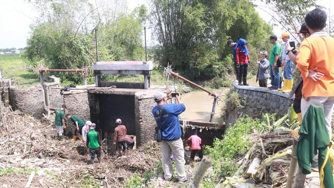 Pembersihan sampah yang menghambat aliran sejumlah sungai dikerjakan Pemkab Mojokerto sejak Kamis (9/2/2023) malam. Hari ini, Bupati Ikfina Fahmawati turun langsung mengecek pengerukan sampah sekaligus kondisi desa yang masih terendam banjir.