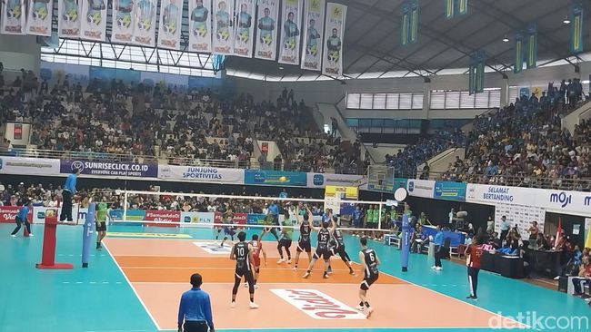 Pertandingan putaran II Proliga 2023 antara Jakarta LavAni Allo Bank vs Jakarta Pertamina Pertamax berlangsung di GOR Ken Arok, Kota Malang, Minggu (12/2/2023). Jakarta LavAni Allo Bank menang 3-0 (25-20, 25-20, 29-27).
