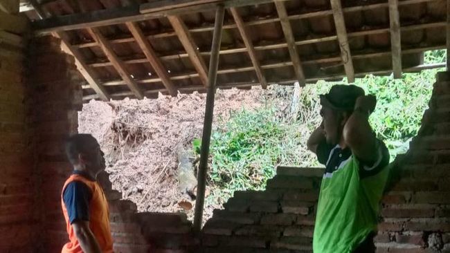 "Akibat longsor ini dinding rumah Pak Toyib jebol, kemudian dapur milik Pak Amin dan Pak Rono juga jebol," jelasnya.