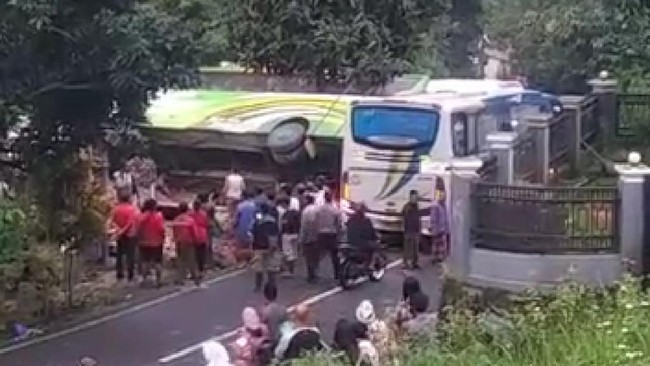 "Bus yang kedua remnya blong terus menabrak bus yang pertama. Bus pertama banting setir ke kiri lalu terguling menabrak musala sama rumah," kata Nanang yang juga kerabat pemilik rumah yang tertabrak bus, Selasa (14/2/2023).