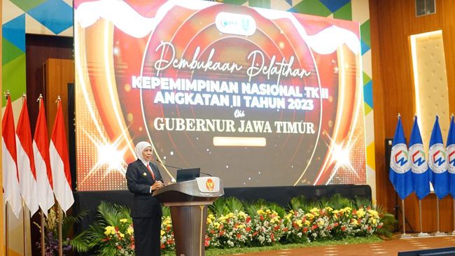 Gubernur Jawa Timur Khofifah Indar Parawansa menyerahkan penghargaan IKI ASN Jawa Timur saat membuka PKN Tingkat II Angkatan II Tahun 2023 di Corporate University BPSDM Jatim Surabaya. Penghargaan IKI ASN diberikan kepada 25 orang ASN Pemprov Jatim yang terpilih lewat adanya program Aplikasi Pengembangan Kompetensi Mandiri Provinsi Jawa Timur (Sibangkodir Jatim) Awards 2023.