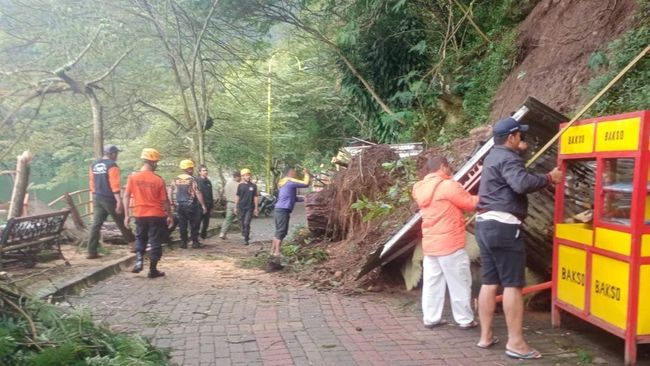 "Sekitar tengah malam tadi longsornya tinggi 20 meter dan lebar 4 meter. Longsoran kecil sebenarnya, tapi yang bikin parah bawa pohon menimpa warung," jelas Primar.