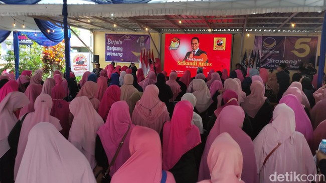 Ratusan emak-emak di Malang Raya mendeklarasikan dukungan untuk Anies Baswedan sebagai Capres di Pilpres 2024. Mereka menamakan diri sebagai relawan Srikandi Malang Raya.