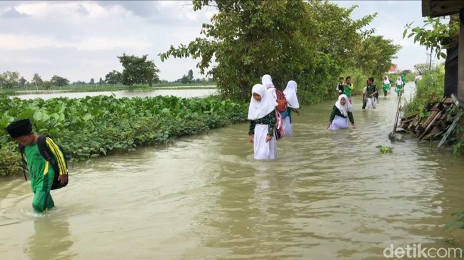 "Banjir juga merendam sejumlah akses jalan poros desa, jalan poros kecamatan hingga sejumlah fasilitas umum seperti sekolah, masjid, dan juga lahan tambak," ujarnya.