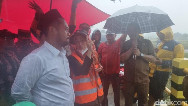 Pemkab Gresik segera menutup tanggul dengan sand bag. Bupati Gresik Fandi Akhmad Yani didampingi Kepala Dinas PUPR Kabupaten Gresik Dianita memantau langsung pemasangan sand bag di tanggul yang jebol. Di bawah guyuran hujan deras, Bupatu yang akrab disapa Gus Yani itu ingin memastikan langsung penambalan tanggul.