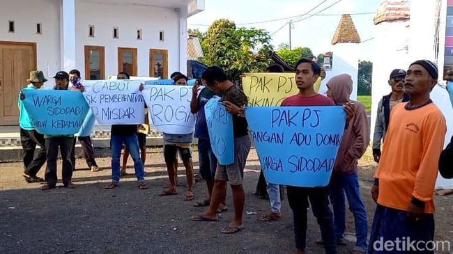 Aksi unjuk rasa dilakukan puluhan warga warga Desa Sidodadi, Paiton, Kabupaten Probolinggo, di balai desa setempat. Mereka menuntut penjabat (Pj) desa yang baru segera diganti.