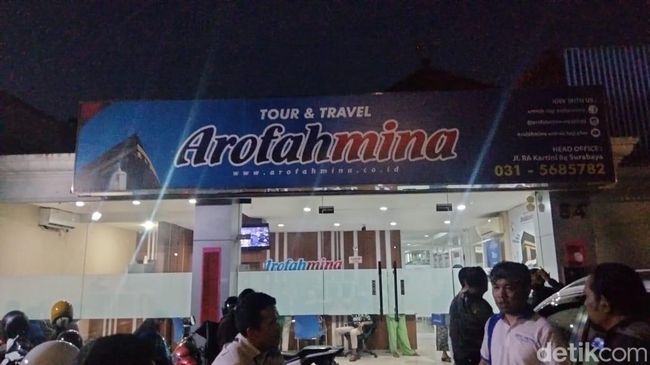 Puluhan warga menggeruduk kantor travel umrah Tour & Travel Arofahmina yang berada Surabaya. Kedatangan mereka ingin menanyakan kejelasan terkait keberangkatan ibadah umrah yang telah dibayarkan.