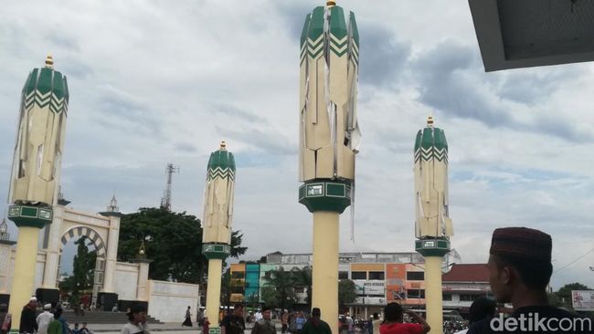 Payung hidrolik atau Payung Madinah di depan Masjid Agung Al-Anwar Kota Pasuruan kembali bermasalah. Satu payung mengalami kerusakan pada besi penyangga membran hingga menjuntai ke bawah.