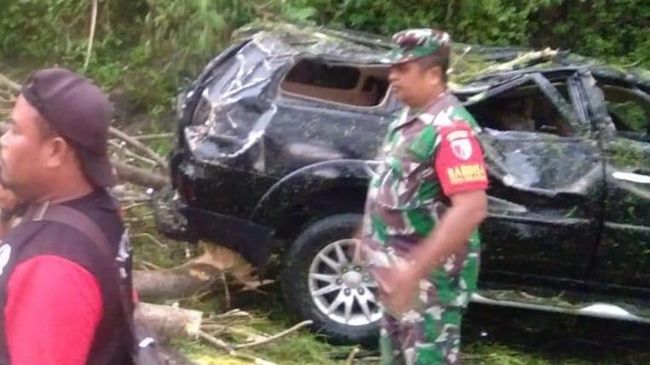 Dua kendaraan yang tertimpa pohon tumbang adalah Mitsubishi Pajero nopol AG 1307 YZ serta Daihatsu Granmax AB 8967 RB.