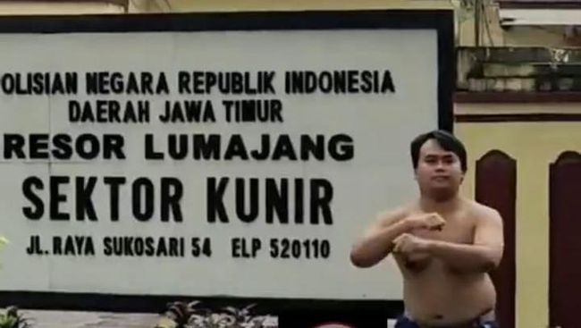 Dalam video berdurasi 48 detik tersebut terlihat bahwa sang konten kreator yang belakangan diketahui bernama Riki Juni Krismiadi itu joget di papan nama Polsek Kunir, Lumajang.