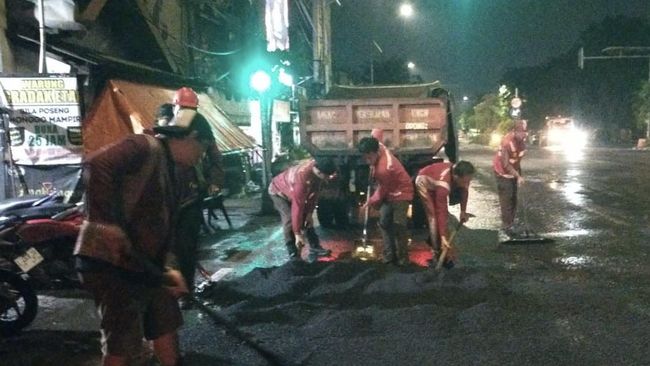 "Normal sehari biasanya cuma 60 ton saat kemarau. Saat ini, kita sampai 120 ton atau dua kali lipat untuk melakukan penambalan jalan," kata Adi.