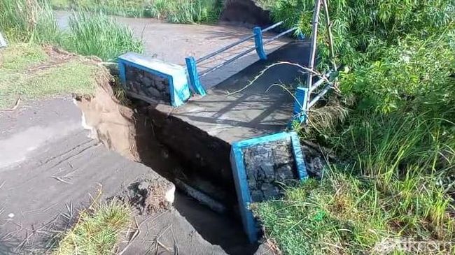 Sementara Kepala Dusun Bodeh Hanif Alfaruq mengatakan ambrolnya jembatan tersebut terjadi pagi tadi sekitar pukul 04.00 WIB. Karena pondasi jembatan di sisi Dusun Bodeh amblas tergerus derasnya arus Sungai Konto.