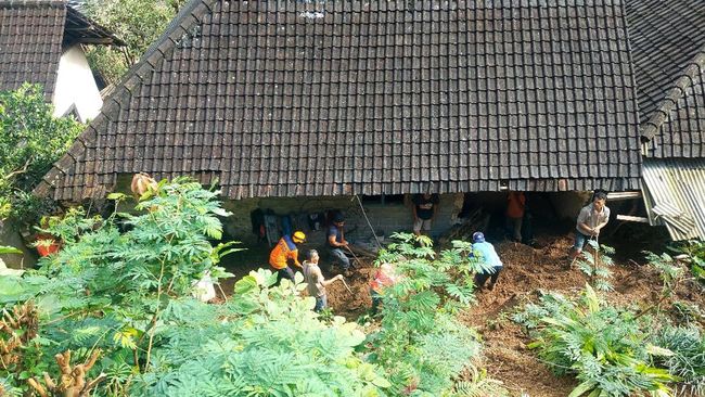 Material longsor menerjang bagian belakang rumah Miskun yang menimpa dinding kamar mandi. Tak ada korban jiwa dalam bencana hidrometeorologi ini.