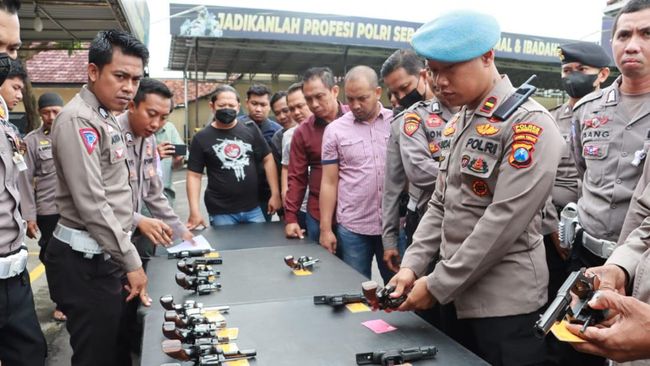 "Sehingga pemeriksaan tadi dilanjutkan dengan pembersihan senpi genggam dinas Polri secara bersama-sama di joglo Sat Samapta," jelasnya.