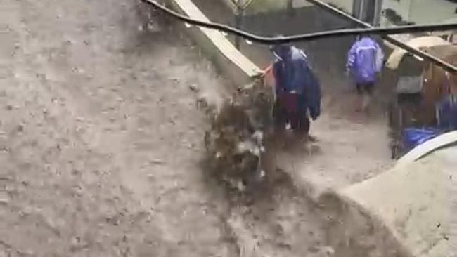 Air juga masuk ke rumah warga. Sejumlah ruas jalan yang terendam banjir seperti berubah jadi sungai.