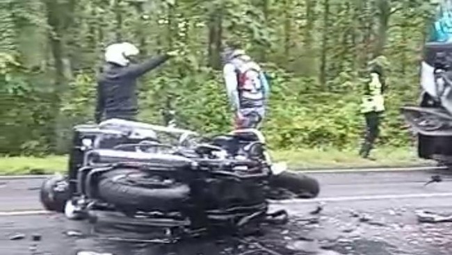 Setelah tabrakan tersebut barulah moge itu terpelanting kembali ke lajur seharusnya moge melaju. Hingga peristiwa itu membuat nyawa pengendara moge itu melayang.