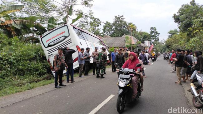 "Perkiraan jam 11.00 bus itu remnya ngeblong. Di depan pasar ada beberapa truk yang parkir. Itu semua kena senggol sama bis. kemudian bus juga menabrak pengendara sepeda motor, pelajar. Baru bus berhenti di parit," ujar Sono.