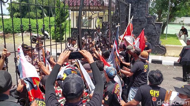 Dalam aksinya, massa tampak saling dorong dengan petugas keamanan di gerbang Kantor Kabupaten Blitar di Kanigoro. Massa lalu merangsek pagar gerbang yang tertutup rapat berharap bisa bertemu langsung Bupati Rini Syarifah.