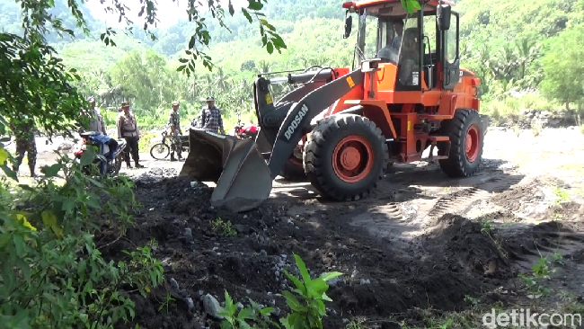 "Kami datang lagi untuk melakukan pengerukan tanah bergoyang yang viral dengan alat berat milik penambang. Lalu kami uruk," ujar Kapolsek Pasirian AKP Agus Sugiharto kepada detikJatim, Kamis (16/3/2023).